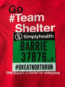 The shirt I am wearing for the Great North Run has the Shelter logo front and back with a tag line on the back until there’s a home for everyone. That’s why I’m running. Donate here